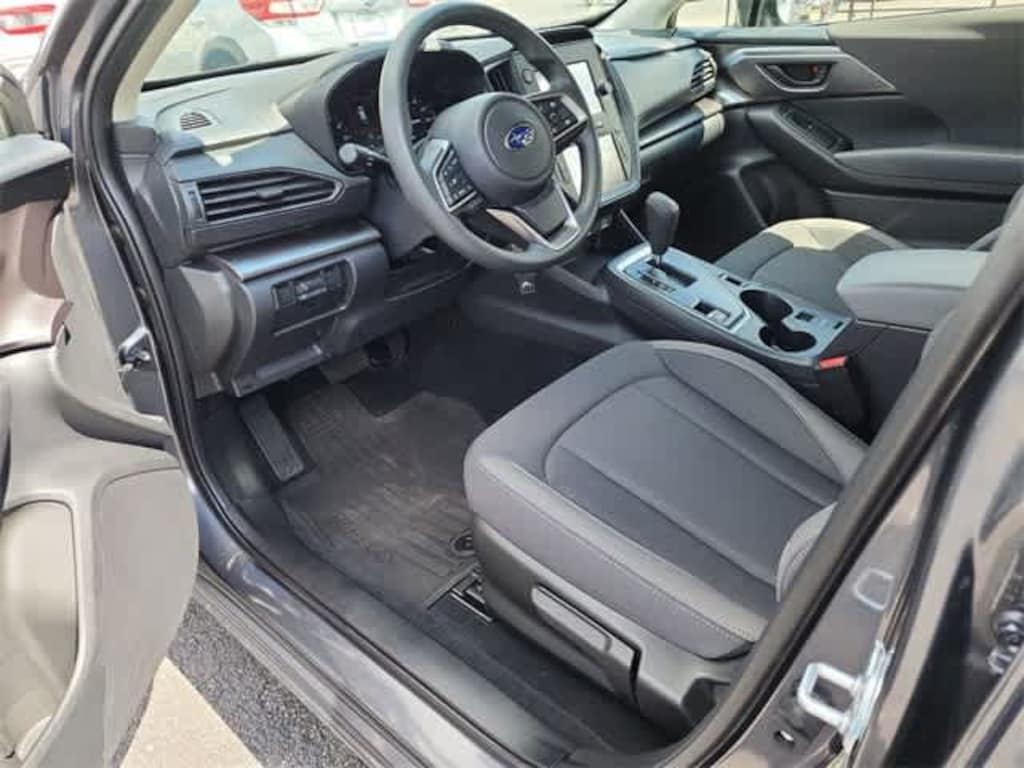 This 2025 Subaru Impreza in Magnetite Gray Metallic, features 4 Speakers, 4-Wheel Disc Brakes, ABS brakes, Air Conditioning, Alloy Wheels, AM/FM radio: SiriusXM, Anti-whiplash front head restraints, Auto High-beam Headlights, Automatic temperature control, Brake assist, Bumpers: body-color, Cloth Upholstery, Driver door bin, Driver vanity mirror, Dual front impact airbags, Dual front side impact airbags, Electronic Stability Control, Exterior Parking Camera Rear, Four wheel independent suspension, Front anti-roll bar, Front Bucket Seats, Front Center Armrest, Front dual zone A/C, Front reading lights, Fully automatic headlights, Illuminated entry, Knee airbag, Low tire pressure warning, Occupant sensing airbag, Outside temperature display, Overhead airbag, Overhead console, Panic alarm, Passenger door bin, Passenger vanity mirror, Power door mirrors, Power steering, Power windows, Radio data system, Rear window defroster, Rear window wiper, Remote keyless entry, Security system, Speed control, Speed-sensing steering, Split folding rear seat, Spoiler, Steering wheel mounted audio controls, Tachometer, Telescoping steering wheel, Tilt steering wheel, Traction control, Trip computer, Variably intermittent wipers, Wheels: 16 x 6.0 1/2J Silver Aluminum Alloy, and Wheels: 16 x 6.0 1/2J Steel w/Full Cap: Subaru Certified, BLUETOOTH HANDS FREE, BACK-UP CAMERA, APPLE CAR PLAY, ALLOY WHEELS, CLEAN VEHICLE HISTORY, 1ST OIL CHANGE FREE. Certified. Subaru Certified Pre-Owned Details: