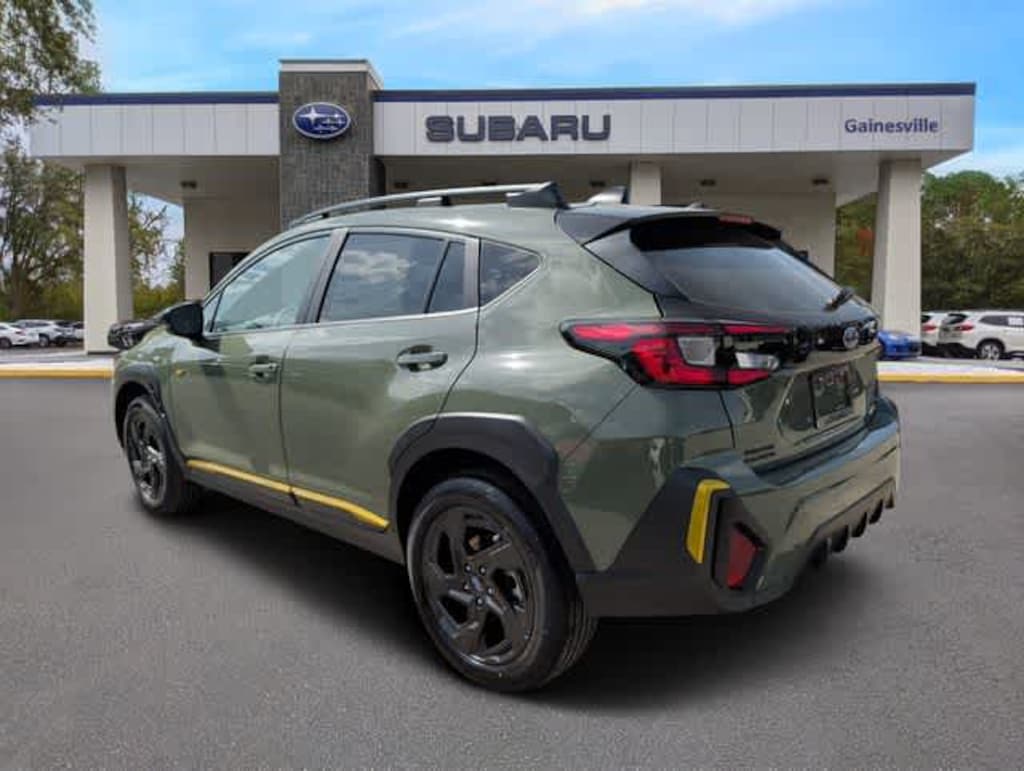 This 2026 Subaru Crosstrek Sport in Alpine Green, features Standard Model, 4-Wheel Disc Brakes, 6 Speakers, ABS brakes, Air Conditioning, Alloy wheels, AM/FM radio: SiriusXM with 360L, Anti-whiplash front head restraints, Auto High-beam Headlights, Auto-Dimming Mirror with Compass and HomeLink, Automatic temperature control, Brake assist, Bumpers: body-color, Driver door bin, Driver vanity mirror, Dual front impact airbags, Dual front side impact airbags, Electronic Stability Control, Emergency communication system: MySubaru Companion (5-years free), Exterior Parking Camera Rear, Four wheel independent suspension, Front anti-roll bar, Front Bucket Seats, Front Center Armrest, Front dual zone A/C, Front fog lights, Front reading lights, Fully automatic headlights, Heated door mirrors, Heated Front Bucket Seats, Heated front seats, Illuminated entry, Knee airbag, Leather Shift Knob, Leather steering wheel, LED Upgrade, Low tire pressure warning, Occupant sensing airbag, Outside temperature display, Overhead airbag, Overhead console, Panic alarm, Passenger door bin, Passenger vanity mirror, Power door mirrors, Power steering, Power windows, Radio data system, Radio: Subaru 11.6 Multimedia Plus System, Rear anti-roll bar, Rear Gate Assist Handle, Rear Gate Light, Rear seat center armrest, Rear side impact airbag, Rear window defroster, Rear window wiper, Remote keyless entry, Security system, Speed control, Speed-sensing steering, Split folding rear seat, Spoiler, Sport Cloth Upholstery, Steering wheel mounted audio controls, Tachometer, Telescoping steering wheel, Tilt steering wheel, Traction control, Trip computer, Turn signal indicator mirrors, Variably intermittent wipers, and Wheels: 18 x 7.0 J Dark Gray Aluminum-Alloy: Sport AWD