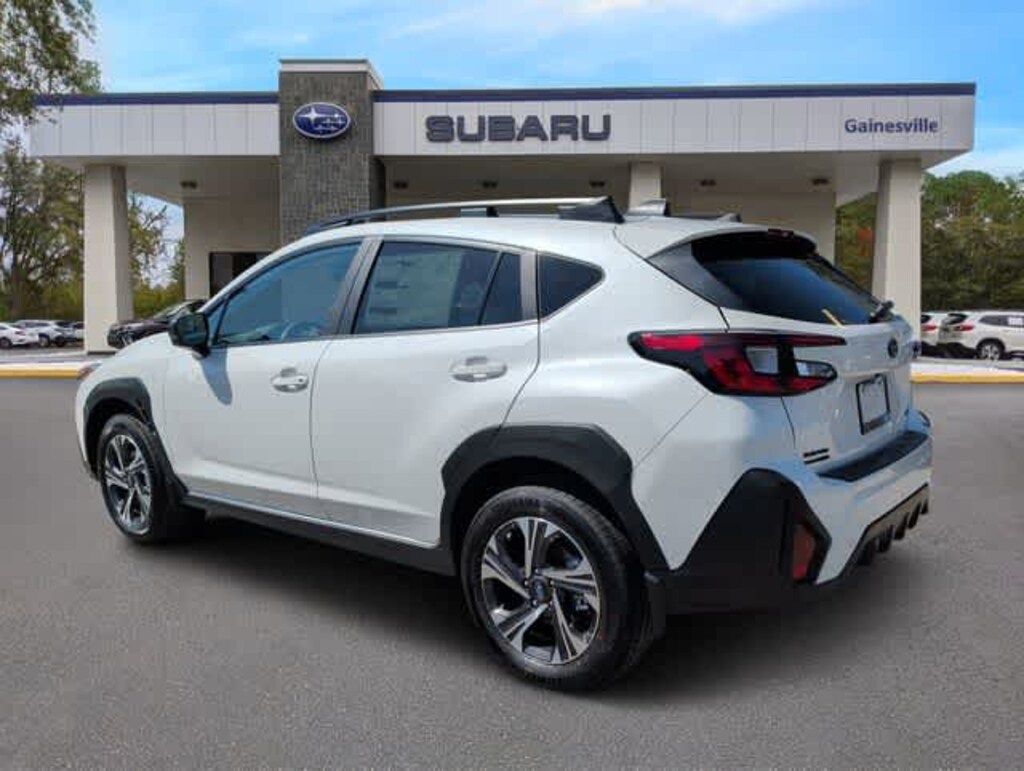 This 2026 Subaru Crosstrek Premium in Crystal White Pearl, features All-Weather Package (Dual-Mode Heated Front Seats, Heated Power Exterior Mirrors, and Windshield De-Icer Wipers), BSD/RCTA and All Weather Package and Power Driver Seat and Power Moonroof (10-Way Power Drivers Seat, Blind Spot Detection (BSD), Power Moonroof, and Rear Cross-Traffic Alert (RCTA) System), Convenience Package #2 (Auto-Dimming Mirror with Compass and HomeLink, Rear Bumper Cover, and Splash Guards), 4-Wheel Disc Brakes, 6 Speakers, ABS brakes, Air Conditioning, Alloy wheels, AM/FM radio: SiriusXM with 360L, Anti-whiplash front head restraints, Auto High-beam Headlights, Automatic temperature control, Brake assist, Bumpers: body-color, Cloth Upholstery, Driver door bin, Driver vanity mirror, Dual front impact airbags, Dual front side impact airbags, Electronic Stability Control, Emergency communication system: MySubaru Companion (5-years free), Exterior Parking Camera Rear, Four wheel independent suspension, Front anti-roll bar, Front Bucket Seats, Front Center Armrest, Front dual zone A/C, Front fog lights, Front reading lights, Fully automatic headlights, Illuminated entry, Knee airbag, Low tire pressure warning, Occupant sensing airbag, Outside temperature display, Overhead airbag, Overhead console, Panic alarm, Passenger door bin, Passenger vanity mirror, Power door mirrors, Power steering, Power windows, Radio data system, Radio: Subaru 11.6 Multimedia Plus System, Rear anti-roll bar, Rear seat center armrest, Rear side impact airbag, Rear window defroster, Rear window wiper, Remote keyless entry, Security system, Speed control, Speed-sensing steering, Split folding rear seat, Spoiler, Steering wheel mounted audio controls, Tachometer, Telescoping steering wheel, Tilt steering wheel, Traction control, Trip computer, Turn signal indicator mirrors, Variably intermittent wipers, and Wheels: 17 x 7.0 J Machine Finish Aluminum-Alloy: Premium AWD