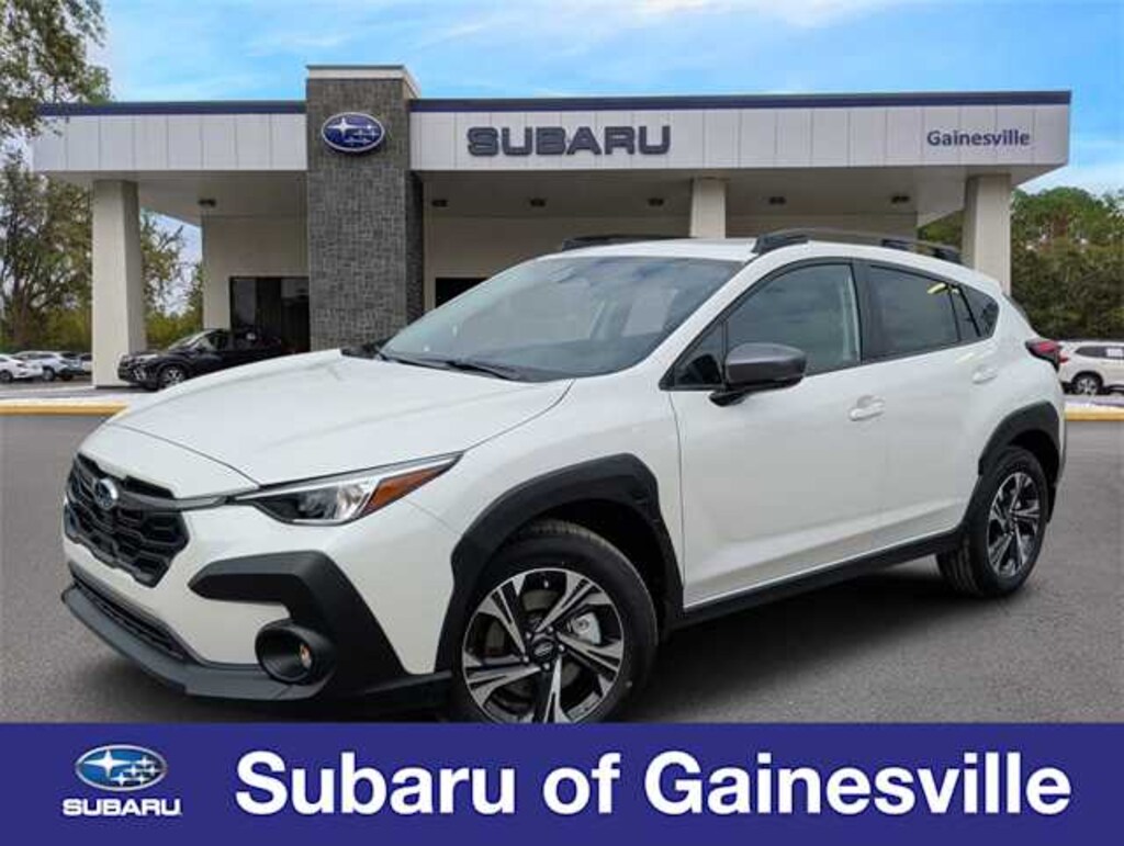 This 2026 Subaru Crosstrek Premium in Crystal White Pearl, features All-Weather Package (Dual-Mode Heated Front Seats, Heated Power Exterior Mirrors, and Windshield De-Icer Wipers), BSD/RCTA and All Weather Package and Power Driver Seat and Power Moonroof (10-Way Power Drivers Seat, Blind Spot Detection (BSD), Power Moonroof, and Rear Cross-Traffic Alert (RCTA) System), Convenience Package #2 (Auto-Dimming Mirror with Compass and HomeLink, Rear Bumper Cover, and Splash Guards), 4-Wheel Disc Brakes, 6 Speakers, ABS brakes, Air Conditioning, Alloy wheels, AM/FM radio: SiriusXM with 360L, Anti-whiplash front head restraints, Auto High-beam Headlights, Automatic temperature control, Brake assist, Bumpers: body-color, Cloth Upholstery, Driver door bin, Driver vanity mirror, Dual front impact airbags, Dual front side impact airbags, Electronic Stability Control, Emergency communication system: MySubaru Companion (5-years free), Exterior Parking Camera Rear, Four wheel independent suspension, Front anti-roll bar, Front Bucket Seats, Front Center Armrest, Front dual zone A/C, Front fog lights, Front reading lights, Fully automatic headlights, Illuminated entry, Knee airbag, Low tire pressure warning, Occupant sensing airbag, Outside temperature display, Overhead airbag, Overhead console, Panic alarm, Passenger door bin, Passenger vanity mirror, Power door mirrors, Power steering, Power windows, Radio data system, Radio: Subaru 11.6 Multimedia Plus System, Rear anti-roll bar, Rear seat center armrest, Rear side impact airbag, Rear window defroster, Rear window wiper, Remote keyless entry, Security system, Speed control, Speed-sensing steering, Split folding rear seat, Spoiler, Steering wheel mounted audio controls, Tachometer, Telescoping steering wheel, Tilt steering wheel, Traction control, Trip computer, Turn signal indicator mirrors, Variably intermittent wipers, and Wheels: 17 x 7.0 J Machine Finish Aluminum-Alloy: Premium AWD