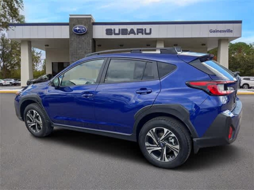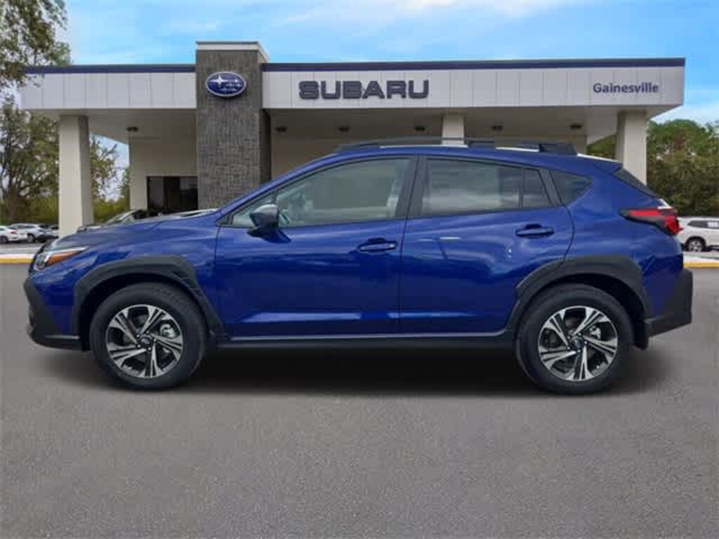 This 2026 Subaru Crosstrek Premium in Sapphire Blue Pearl, features Popular Package #4 (All-Weather Floor Liners, Auto-Dimming Exterior Mirror with Approach Light, Auto-Dimming Mirror with Compass and HomeLink, Rear Bumper Cover, and Splash Guards), Standard Model, 4-Wheel Disc Brakes, 6 Speakers, ABS brakes, Air Conditioning, Alloy wheels, AM/FM radio: SiriusXM with 360L, Anti-whiplash front head restraints, Auto High-beam Headlights, Automatic temperature control, Brake assist, Bumpers: body-color, Cloth Upholstery, Driver door bin, Driver vanity mirror, Dual front impact airbags, Dual front side impact airbags, Electronic Stability Control, Emergency communication system: MySubaru Companion (5-years free), Exterior Parking Camera Rear, Four wheel independent suspension, Front anti-roll bar, Front Bucket Seats, Front Center Armrest, Front dual zone A/C, Front fog lights, Front reading lights, Fully automatic headlights, Illuminated entry, Knee airbag, Low tire pressure warning, Occupant sensing airbag, Outside temperature display, Overhead airbag, Overhead console, Panic alarm, Passenger door bin, Passenger vanity mirror, Power door mirrors, Power steering, Power windows, Radio data system, Radio: Subaru 11.6 Multimedia Plus System, Rear anti-roll bar, Rear seat center armrest, Rear side impact airbag, Rear window defroster, Rear window wiper, Remote keyless entry, Security system, Speed control, Speed-sensing steering, Split folding rear seat, Spoiler, Steering wheel mounted audio controls, Tachometer, Telescoping steering wheel, Tilt steering wheel, Traction control, Trip computer, Turn signal indicator mirrors, Variably intermittent wipers, and Wheels: 17 x 7.0 J Machine Finish Aluminum-Alloy: Premium AWD
