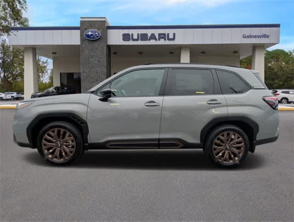 This 2026 Subaru Forester Sport in River Rock Pearl, features Harman/Kardon Speaker System and Power Rear Gate and Reverse Automatic Braking (Harman/Kardon Speaker System, Power Rear Gate, Reverse Automatic Braking (RAB) System, and SI-Drive Dual-Mode Engine Performance Management), Sport Plus Package (All-Weather Floor Liners, Auto-Dimming Mirror with Compass and HomeLink, Cargo Net, Rear Bumper Cover, and Splash Guards), 4-Wheel Disc Brakes, 6 Speakers, ABS brakes, Air Conditioning, Alloy wheels, AM/FM radio: SiriusXM with 360L, Anti-whiplash front head restraints, Auto High-beam Headlights, Automatic temperature control, Brake assist, Bumpers: body-color, Driver door bin, Driver vanity mirror, Dual front impact airbags, Dual front side impact airbags, Electronic Stability Control, Emergency communication system: MySubaru Companion (5-years free), Exterior Parking Camera Rear, Four wheel independent suspension, Front anti-roll bar, Front Bucket Seats, Front Center Armrest, Front dual zone A/C, Front fog lights, Front reading lights, Fully automatic headlights, Heated door mirrors, Heated Front Bucket Seats, Heated front seats, Illuminated entry, Knee airbag, Leather steering wheel, Low tire pressure warning, Occupant sensing airbag, Outside temperature display, Overhead airbag, Overhead console, Panic alarm, Passenger door bin, Passenger vanity mirror, Power door mirrors, Power driver seat, Power moonroof: Panoramic, Power steering, Power windows, Radio data system, Radio: Subaru 11.6 Multimedia Plus System, Rear anti-roll bar, Rear seat center armrest, Rear window defroster, Rear window wiper, Remote keyless entry, Security system, Speed control, Speed-sensing steering, Split folding rear seat, Spoiler, Sport StarTex Upholstery, Steering wheel mounted audio controls, Tachometer, Telescoping steering wheel, Tilt steering wheel, Traction control, Trip computer, Turn signal indicator mirrors, Variably intermittent wipers, and Wheels: 19 x 7.5 J Bronze Finish Aluminum-Alloy: Sport AWD