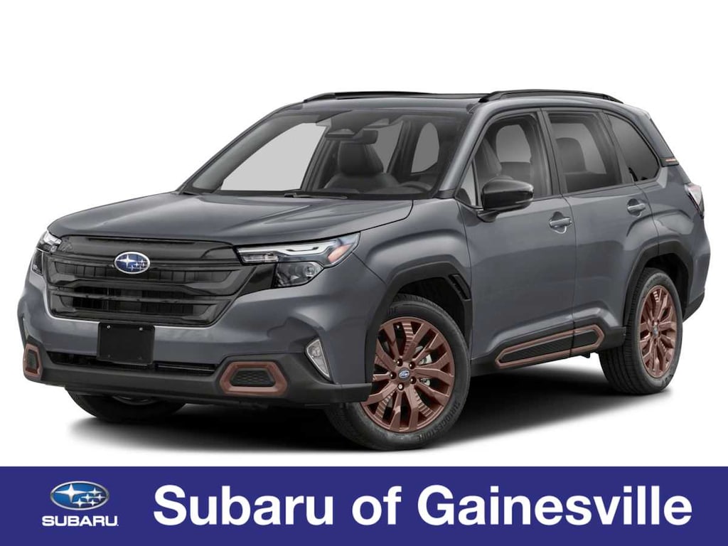 This 2026 Subaru Forester Sport in Crystal Black Silica, features Onlx Edition (Black Integrated Front Bumper Underguard, Black Integrated Rear Bumper Underguard, Black Integrated Side Underguard, Black Simulated Leather Dash Panel, Chrome Symmetrical AWD Side Badge, Harman/Kardon Speaker System, Leather-Wrapped Steering Wheel, Passenger Side Decorative Trim, Power Rear Gate, Reverse Automatic Braking (RAB) System, SI-Drive Dual-Mode Engine Performance Management, Sport Onyx StarTex Upholstery, Sport Rear Badge, and Wheels: 19 x 7.5 J Alloy w/Dark Metallic Finish), 4-Wheel Disc Brakes, 6 Speakers, ABS brakes, Air Conditioning, Alloy wheels, AM/FM radio: SiriusXM with 360L, Anti-whiplash front head restraints, Auto High-beam Headlights, Auto-Dimming Exterior Mirror with Approach Light, Auto-Dimming Mirror with Compass and HomeLink, Automatic temperature control, Brake assist, Bumpers: body-color, Driver door bin, Driver vanity mirror, Dual front impact airbags, Dual front side impact airbags, Electronic Stability Control, Emergency communication system: MySubaru Companion (5-years free), Exterior Parking Camera Rear, Four wheel independent suspension, Front anti-roll bar, Front Bucket Seats, Front Center Armrest, Front dual zone A/C, Front fog lights, Front reading lights, Fully automatic headlights, Heated door mirrors, Heated Front Bucket Seats, Heated front seats, Illuminated entry, Knee airbag, Leather steering wheel, Low tire pressure warning, Occupant sensing airbag, Outside temperature display, Overhead airbag, Overhead console, Panic alarm, Passenger door bin, Passenger vanity mirror, Power door mirrors, Power driver seat, Power moonroof: Panoramic, Power steering, Power windows, Radio data system, Radio: Subaru 11.6 Multimedia Plus System, Rear anti-roll bar, Rear seat center armrest, Rear window defroster, Rear window wiper, Remote keyless entry, Security system, Speed control, Speed-sensing steering, Split folding rear seat, Spoiler, Sport StarTex Upholstery, Steering wheel mounted audio controls, Tachometer, Telescoping steering wheel, Tilt steering wheel, Traction control, Trip computer, Turn signal indicator mirrors, Variably intermittent wipers, and Wheels: 19 x 7.5 J Bronze Finish Aluminum-Alloy: Sport AWD