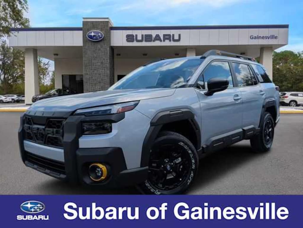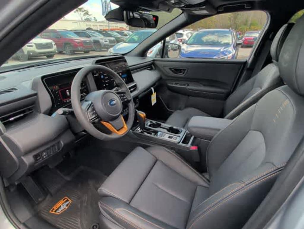 This 2026 Subaru Outback Wilderness in Ice Silver Metallic, features Moonroof and Navigation and Surround View Monitor and Ventilated Seats (Heated and Ventilated Front Bucket Seats, Nappa Leather Upholstery, Power Moonroof, Power-Folding Heated Exterior Mirrors, Radio: Subaru 12.1 Multimedia System with Navigation, and Surround View Monitor), 12 Speakers, 4-Wheel Disc Brakes, ABS brakes, Air Conditioning, Alloy wheels, AM/FM radio: SiriusXM with 360L, Anti-whiplash front head restraints, Auto High-beam Headlights, Auto-Dimming Exterior Mirror with Approach Light, Auto-Dimming Mirror with Compass and HomeLink, Automatic temperature control, Blind Spot Warning, Brake assist, Bumpers: body-color, Driver door bin, Driver vanity mirror, Dual front impact airbags, Dual front side impact airbags, Electronic Stability Control, Emergency communication system: MySubaru Companion (5-years free), Exterior Parking Camera Rear, Four wheel independent suspension, Front anti-roll bar, Front Bucket Seats, Front Center Armrest w/Storage, Front dual zone A/C, Front fog lights, Front reading lights, Fully automatic headlights, harman/kardonî Speakers, Heated door mirrors, Heated Front Bucket Seats, Heated front seats, Heated rear seats, Heated steering wheel, HVAC memory, Illuminated entry, Knee airbag, Leather Shift Knob, Leather steering wheel, Low tire pressure warning, Occupant sensing airbag, Outside temperature display, Overhead airbag, Overhead console, Panic alarm, Passenger door bin, Passenger vanity mirror, Power door mirrors, Power driver seat, Power Liftgate, Power steering, Power windows, Radio: Subaru 12.1 Multimedia System, Rain sensing wipers, Rear anti-roll bar, Rear seat center armrest, Rear window defroster, Rear window wiper, Remote keyless entry, Security system, Speed control, Speed-sensing steering, Split folding rear seat, Spoiler, StarTex-Trimmed Upholstery, Steering wheel mounted audio controls, Tachometer, Telescoping steering wheel, Tilt steering wheel, Traction control, Trip computer, Turn signal indicator mirrors, Variably intermittent wipers, and Wheels: 17 x 7J Matte Black Finish Aluminum-Alloy: Wilderness AWD