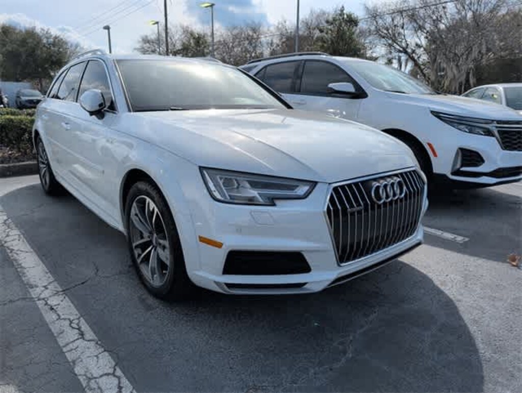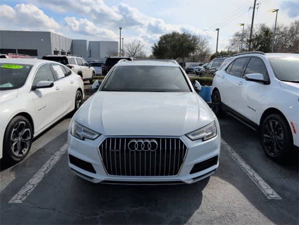 This 2017 Audi A4 allroad 2.0T Premium Plus in Glacier White Metallic, features Cold Weather Package (Heated Rear Seats (3-Step) and Heated Steering Wheel), Premium Plus Package (Anti-Theft Alarm System, Audi Advanced Key (Keyless Entry), Audi Connect CARE, Bang & Olufsen Sound System w/3D Sound, HD Radio Technology, Heated Auto-Dimming Power Folding Exterior Mirrors, Heated Front Seats, LED Headlights, Parking System Plus (Front/Rear Acoustic Sensors), and SIRIUS Satellite Radio), Technology Package (Audi Connect PRIME & PLUS, Audi Pre Sense Rear, Audi Side Assist, Audi Virtual Cockpit, and Radio: Audi MMI Navigation Plus w/MMI Touch), 10 Speakers, 4-Wheel Disc Brakes, ABS brakes, Adaptive suspension, Air Conditioning, Alloy wheels, AM/FM radio, Audi Guard Protection Kit, Audi smartphone interface (Apple CarPlay/Android Auto), Auto-dimming Rear-View mirror, Automatic temperature control, Brake assist, Bumpers: body-color, Compass, Dark Brown Walnut High Gloss Inlays, Delay-off headlights, Delete Front License Plate Holder, Driver door bin, Driver vanity mirror, Dual front impact airbags, Dual front side impact airbags, Electronic Stability Control, Exterior Parking Camera Rear, Four wheel independent suspension, Front anti-roll bar, Front Bucket Seats, Front Center Armrest, Front dual zone A/C, Front fog lights, Front reading lights, Full Paint Finish, Fully automatic headlights, Garage door transmitter: HomeLink, Headlight cleaning, Heated door mirrors, High intensity discharge headlights: Xenon plus, Illuminated entry, Knee airbag, Leather Seating Surfaces, Leather Shift Knob, Leather steering wheel, Low tire pressure warning, Occupant sensing airbag, Outside temperature display, Overhead airbag, Overhead console, Panic alarm, Passenger door bin, Passenger vanity mirror, Power door mirrors, Power driver seat, Power Front Seats, Power Liftgate, Power moonroof, Power passenger seat, Power steering, Power windows, Radio data system, Radio: Audi Sound System, Rain sensing wipers, Rear air conditioning, Rear anti-roll bar, Rear fog lights, Rear reading lights, Rear seat center armrest, Rear window defroster, Rear window wiper, Remote CD player, Remote keyless entry, Roof rack: rails only, Speed control, Speed-sensing steering, Speed-Sensitive Wipers, Split folding rear seat, Spoiler, Steering wheel mounted audio controls, Tachometer, Telescoping steering wheel, Tilt steering wheel, Traction control, Trip computer, Turn signal indicator mirrors, USB Cables, Variably intermittent wipers, and Wheels: 7.5 x 18 5-V-Spoke Design: Anti-Theft Alarm System, Audi Advanced Key (Keyless Entry), Audi Connect CARE, Audi Connect PRIME & PLUS, Audi Pre Sense Rear, Audi Side Assist, Audi Virtual Cockpit, Bang & Olufsen Sound System w/3D Sound, Cold Weather Package, HD Radio Technology, Heated Auto-Dimming Power Folding Exterior Mirrors, Heated Front Seats, Heated Rear Seats (3-Step), Heated Steering Wheel, LED Headlights, Parking System Plus (Front/Rear Acoustic Sensors), Premium Plus Package, Radio: Audi MMI Navigation Plus w/MMI Touch, SIRIUS Satellite Radio, Technology Package.