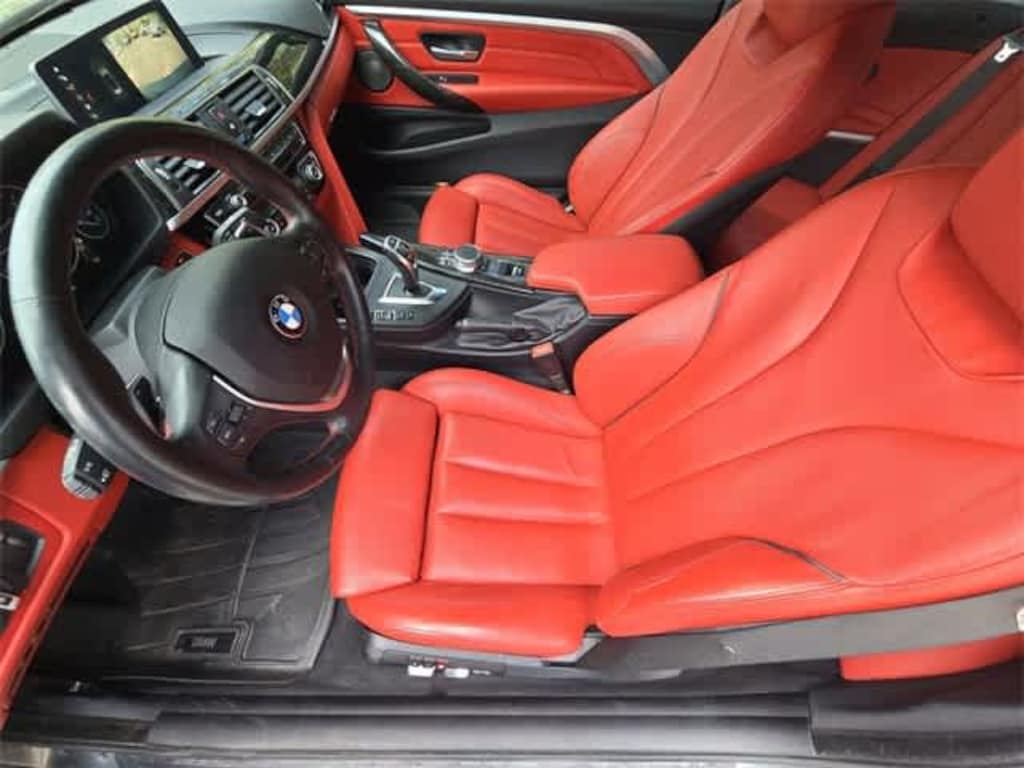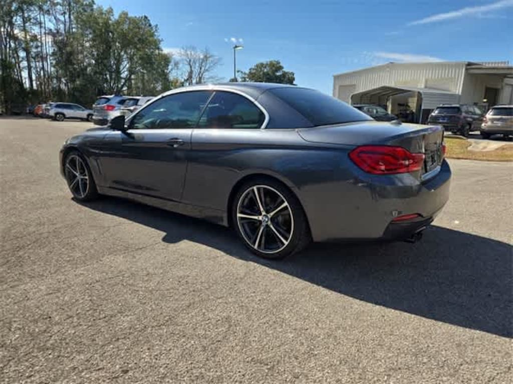 This 2019 BMW 4 Series 430i in Mineral Grey Metallic, features Convenience Package (Active Blind Spot Detection, Heated Front Seats, and Lumbar Support), Driving Assistance Package (Active Driving Assistant and Speed Limit Information), Executive Package (Adaptive Full LED Lights, Automatic High Beams, Dakota Leather Upholstery, Parking Assistant, and Side & Top View Cameras), 4-Wheel Disc Brakes, 9 Speakers, ABS brakes, Air Conditioning, Alloy wheels, AM/FM Radio, AM/FM radio: SiriusXM, Anti-whiplash front head restraints, Apple CarPlay, Apple CarPlay Compatibility, Auto-dimming door mirrors, Auto-dimming Rear-View mirror, Automatic temperature control, Brake assist, Bumpers: body-color, Convertible HardTop, Convertible roof lining, Convertible roof wind blocker, Delay-off headlights, Driver door bin, Driver vanity mirror, Dual front impact airbags, Dual front side impact airbags, Electronic Stability Control, Emergency communication system: BMW Assist eCall, Exterior Parking Camera Rear, Four wheel independent suspension, Front anti-roll bar, Front Bucket Seats, Front Center Armrest, Front dual zone A/C, Front fog lights, Front reading lights, Fully automatic headlights, Garage door transmitter, Genuine wood console insert, Genuine wood dashboard insert, Genuine wood door panel insert, Glass rear window, Hands-Free Bluetooth & USB Audio Connection, harman/kardon Surround Sound System, HD Radio, Head-Up Display, Heated door mirrors, Hi-Fi Sound System, Illuminated entry, Increased Top Speed Limiter, Instrument Cluster w/Extended Contents, Integrated roll-over protection, Knee airbag, Leather Shift Knob, Leather steering wheel, Low tire pressure warning, Memory seat, Navigation System, Occupant sensing airbag, Outside temperature display, Panic alarm, Passenger door bin, Passenger vanity mirror, Power convertible roof, Power door mirrors, Power driver seat, Power Front Seats, Power passenger seat, Power steering, Power windows, Radio data system, Rain sensing wipers, Rear air conditioning, Rear anti-roll bar, Rear reading lights, Rear seat center armrest, Rear window defroster, Remote keyless entry, Security system, SensaTec Leatherette Upholstery, SiriusXM Satellite Radio, Speed control, Speed-sensing steering, Speed-Sensitive Wipers, Sport Seats, Sport steering wheel, Steering wheel mounted audio controls, Tachometer, Telescoping steering wheel, Tilt steering wheel, Traction control, Trip computer, Turn signal indicator mirrors, Variably intermittent wipers, Wheels: 18 x 8 Double-Spoke (Style 397), and Wheels: 19 x 8 Fr & 19 x 8.5 Rr (Style 407): BLUETOOTH HANDS FREE, BACK-UP CAMERA, LEATHER, HEATED SEATS, POWER SEATS, KEYLESS-GO, ALLOY WHEELS.