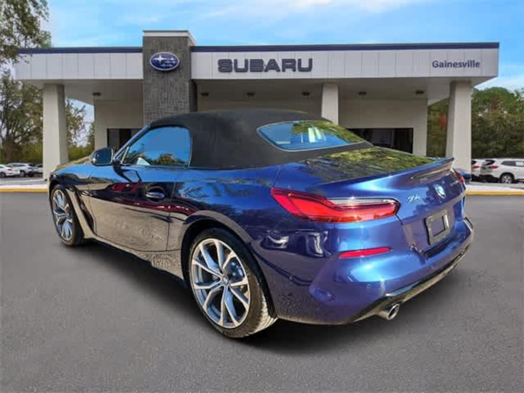 This 2020 BMW Z4 sDrive30i in Mediterranean Blue Metallic, features Connected Package Pro, Convenience Package (Active Driving Assistant, Comfort Access Keyless Entry, Lumbar Support, Parking Assistant, Rear-View Camera, and SiriusXM Satellite Radio), 10 Speakers, 4-Wheel Disc Brakes, ABS brakes, Air Conditioning, Alloy wheels, AM/FM Radio, AM/FM radio, Ambient Lighting, Apple CarPlay Compatibility, Apple CarPlay Compatibility w/1 Year Trial, Audio memory, Auto-dimming door mirrors, Auto-dimming Rear-View mirror, Automatic temperature control, Black High Gloss Trim, BMW Assist eCall, BMW TeleServices, Brake assist, Bumpers: body-color, Child-Seat-Sensing Airbag, Compass, ConnectedDrive Services, Convertible roof lining, Convertible roof wind blocker, Delay-off headlights, Driver door bin, Driver vanity mirror, Dual front impact airbags, Dual front side impact airbags, Electronic Stability Control, Emergency communication system: BMW Assist eCall, Exterior Parking Camera Rear, Four wheel independent suspension, Front anti-roll bar, Front Bucket Seats, Front Center Armrest, Front dual zone A/C, Front reading lights, Fully automatic headlights, Garage door transmitter, Glass rear window, Heated door mirrors, Heated Front Seats, Hi-Fi Sound System, HVAC memory, Illuminated entry, Integrated roll-over protection, Knee airbag, Live Cockpit Pro w/Navi, Low tire pressure warning, M Sport Front Seats, Memory seat, Navigation System, Occupant sensing airbag, Outside temperature display, Overhead console, Panic alarm, Passenger door bin, Passenger vanity mirror, Power convertible roof, Power door mirrors, Power driver seat, Power Front Seats, Power passenger seat, Power steering, Power windows, Radio Control US, Radio data system, Rain sensing wipers, Rear anti-roll bar, Rear window defroster, Remote keyless entry, Security system, SensaTec Seat Upholstery, Speed control, Speed-sensing steering, Speed-Sensitive Wipers, Sport steering wheel, Steering wheel mounted audio controls, Tachometer, Telescoping steering wheel, Tilt steering wheel, Traction control, Trip computer, Turn signal indicator mirrors, Variably intermittent wipers, Wheels: 18 x 8 Front & 18 x 9 Rear V-Spoke, and Wheels: 19 x 9 Front & 19 x 10 Rear V-Spoke: