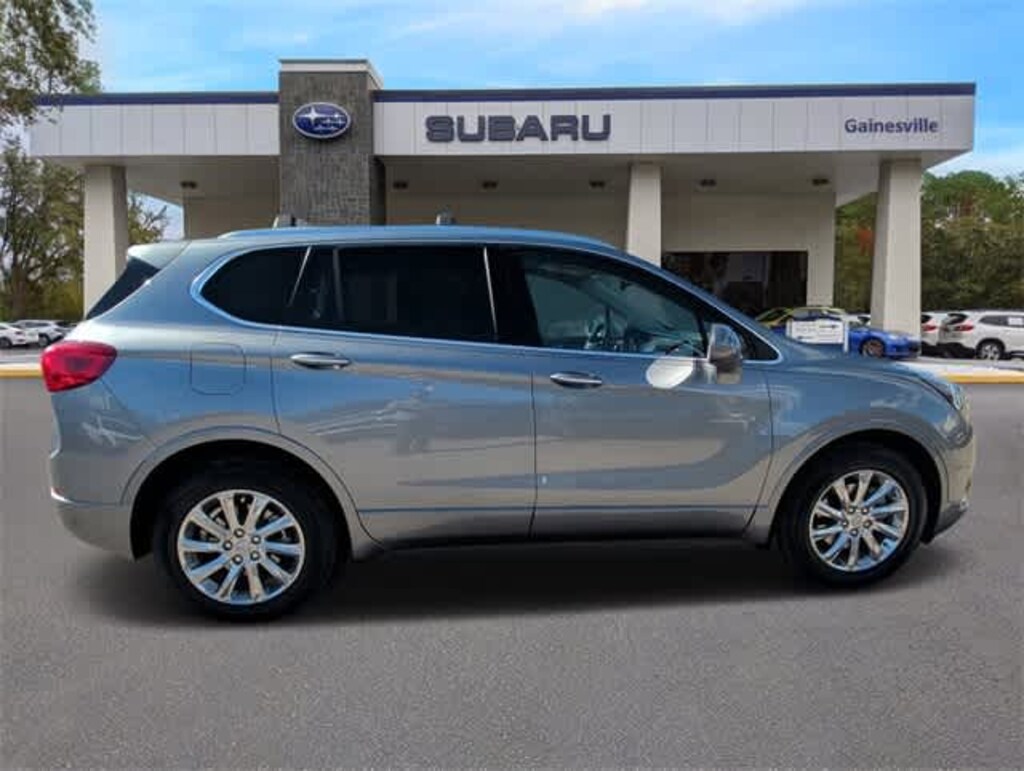 This 2019 Buick Envision Essence in Satin Steel Metallic, features Preferred Equipment Group 1SL, Road Trip Package (LPO) (All-Weather Floor Mats and Roof Rack Cross Rails (LPO)), 18 10-Spoke Polished Aluminum Wheels, 3.50 Final Drive Axle Ratio, 4-Wheel Disc Brakes, 6 Speakers, 6-Speaker Audio System Feature, ABS brakes, Air Conditioning, Alloy wheels, AM/FM radio: SiriusXM, Apple CarPlay/Android Auto, Auto-dimming door mirrors, Auto-dimming Rear-View mirror, Automatic temperature control, Brake assist, Bumpers: body-color, Compass, Delay-off headlights, Driver 8-Way Power Seat Adjuster, Driver door bin, Driver vanity mirror, Dual front impact airbags, Dual front side impact airbags, Electronic Stability Control, Emergency communication system: OnStar and Buick connected services capable, Exterior Parking Camera Rear, Four wheel independent suspension, Front anti-roll bar, Front Bucket Seats, Front Center Armrest, Front dual zone A/C, Front fog lights, Front Passenger 8-Way Power Seat Adjuster, Front reading lights, Fully automatic headlights, Garage door transmitter, Heated door mirrors, Heated Driver & Front Passenger Seats, Heated front seats, Heated rear seats, Heated steering wheel, High-Intensity Discharge Headlights, Illuminated entry, Knee airbag, Leather Shift Knob, Low tire pressure warning, Memory seat, Occupant sensing airbag, Outside temperature display, Overhead airbag, Overhead console, Panic alarm, Passenger door bin, Passenger vanity mirror, Perforated Leather-Appointed Seat Trim, Power door mirrors, Power driver seat, Power Liftgate, Power Panoramic Tilt-Sliding Moonroof, Power passenger seat, Power steering, Power windows, Radio data system, Radio: Buick Infotainment System AM/FM Stereo, Radio: Buick Infotainment System AM/FM w/Nav, Rear air conditioning, Rear anti-roll bar, Rear reading lights, Rear seat center armrest, Rear side impact airbag, Rear window defroster, Rear window wiper, Remote keyless entry, Roof rack: rails only, Security system, SiriusXM Radio, Speed control, Speed-sensing steering, Split folding rear seat, Spoiler, Steering wheel mounted audio controls, Tachometer, Telescoping steering wheel, Tilt steering wheel, Traction control, Trip computer, Turn signal indicator mirrors, and Variably intermittent wipers: BLUETOOTH HANDS FREE, BACK-UP CAMERA, APPLE CAR PLAY, LEATHER, POWER SEATS, NAVIGATION, KEYLESS-GO, POWER PACKAGE, ALLOY WHEELS, CLEAN VEHICLE HISTORY.