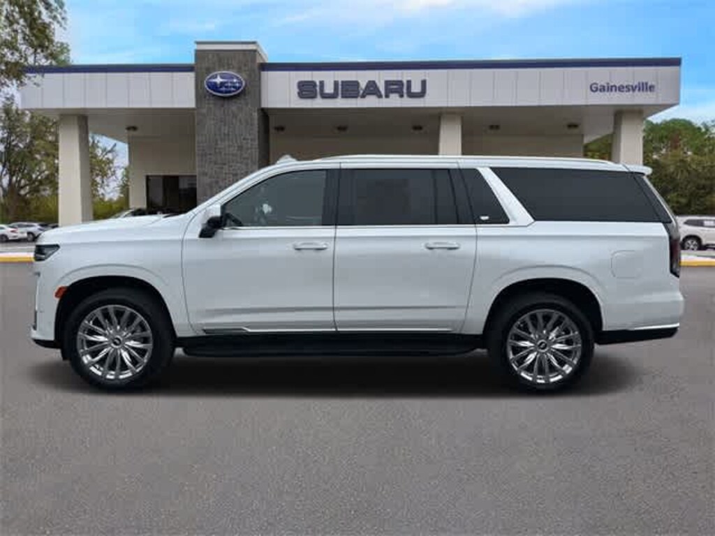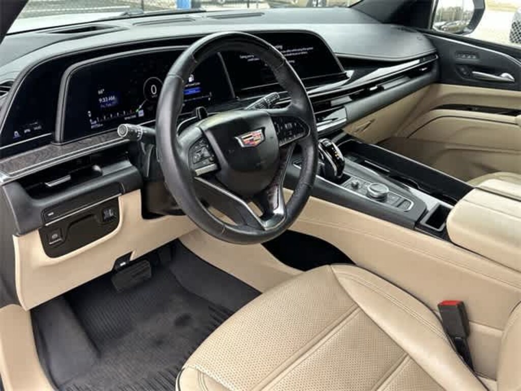This 2023 Cadillac Escalade ESV Premium in Crystal White Tricoat, features Preferred Equipment Group 1SB (Adaptive Cruise Control, AKG Studio 19-Speaker Audio System, Automatic Seat Belt Tightening, Door Lock & Latch Shields, Enhanced Automatic Emergency Braking, Enhanced Automatic Parking Assist, Glass Breakage Sensor, Heated & Ventilated Driver & Front Passenger Seats, Lane Change Alert w/Side Blind Zone Alert, Mechanical Limited-Slip Differential, Power Panoramic Tilt-Sliding Sunroof, Rear Camera Mirror, Rear Camera Mirror Washer, Rear Cross Traffic Alert, Reconfigurable Full-Color Head-Up Display, Reverse Automatic Braking, Running Board Assist Steps, Theft-Deterrent Alarm System, Vehicle Inclination Sensor, and Vehicle Interior Movement Sensor), 16.9 Diagonal OLED Infotainment Screen, 19 Speakers, 2-Presets Memory For Driver Seat Adjuster, 2-Way Driver Power Lumbar Seat Adjuster, 2-Way Front Passenger Power Lumbar Seat Adjuster, 3 Years of OnStar & Connected Services Plan, 3.23 Axle Ratio, 3rd row seats: split-bench, 4-Way Power Driver Lumbar Seat Adjuster, 4-Way Power Front Passenger Lumbar Seat Adjuster, 4-Wheel Disc Brakes, 8-Way Power Driver Seat Adjuster, 8-Way Power Front Passenger Seat Adjuster, ABS brakes, Air Conditioning, Alloy wheels, AM/FM radio: SiriusXM with 360L, Apple CarPlay/Android Auto, Audio memory, Auto High-beam Headlights, Auto tilt-away steering wheel, Auto-dimming door mirrors, Automatic temperature control, Brake assist, Bumpers: body-color, Compass, Delay-off headlights, Driver door bin, Driver vanity mirror, Dual front impact airbags, Dual front side impact airbags, Electronic Stability Control, Emergency communication system: OnStar and Cadillac connected services capable, Exterior Parking Camera Rear, Four wheel independent suspension, Front anti-roll bar, Front Bucket Seats, Front Center Armrest w/Storage, Front dual zone A/C, Front reading lights, Fully automatic headlights, Garage door transmitter, HD Radio, Heads-Up Display, Heated door mirrors, Heated Driver & Front Passenger Seats, Heated front seats, Heated rear seats, Heated steering wheel, Illuminated entry, Leather Seating Surfaces w/Mini-Chevron Perf Inserts, Low tire pressure warning, Memory seat, Navigation System, Not Equipped w/2nd Row Express-Up Window Control, Not Equipped w/4-Way Driver & Fr Pass Pwr Lumbar, Not Equipped w/Wheel Locks (LPO), Occupant sensing airbag, Outside temperature display, Overhead airbag, Overhead console, Panic alarm, Passenger door bin, Passenger vanity mirror, Power door mirrors, Power driver seat, Power Liftgate, Power moonroof, Power passenger seat, Power steering, Power windows, Premium Smooth Ride Suspension, Radio data system, Radio: AM/FM w/Navigation, Rain sensing wipers, Rear air conditioning, Rear anti-roll bar, Rear reading lights, Rear window defroster, Rear window wiper, Remote keyless entry, Security system, SiriusXM w/360L, Speed control, Split folding rear seat, Spoiler, Steering wheel memory, Steering wheel mounted audio controls, Super Cruise, Tachometer, Teen Driver, Telescoping steering wheel, Tilt steering wheel, Traction control, Trip computer, Turn signal indicator mirrors, Variably intermittent wipers, Ventilated front seats, Voltmeter, Wheel Locks, Wheels: 22 14-Spoke Alloy w/Polished Finish, and Wireless Apple CarPlay/Wireless Android Auto: BLUETOOTH HANDS FREE, BACK-UP CAMERA, LEATHER, HEATED SEATS, POWER SEATS, THIRD ROW, POWER PACKAGE, ONE OWNER NEVER A RENTAL, CLEAN VEHICLE HISTORY.