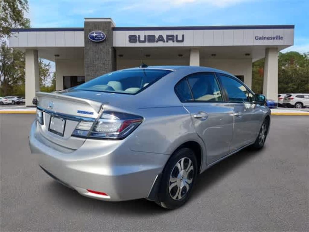 This 2015 Honda Civic Hybrid in Alabaster Silver Metallic, features 15 Lightweight Alloy Wheels, 6 Speakers, ABS brakes, Air Conditioning, Alloy wheels, Automatic temperature control, Brake assist, Bumpers: body-color, CD player, Cloth Seat Trim, Delay-off headlights, Driver door bin, Driver vanity mirror, Dual front impact airbags, Dual front side impact airbags, Electronic Stability Control, Exterior Parking Camera Rear, Four wheel independent suspension, Front anti-roll bar, Front Bucket Seats, Front Center Armrest, Front reading lights, Fully automatic headlights, Illuminated entry, Low tire pressure warning, Occupant sensing airbag, Outside temperature display, Overhead airbag, Panic alarm, Passenger door bin, Passenger vanity mirror, Power door mirrors, Power steering, Power windows, Radio data system, Rear anti-roll bar, Rear window defroster, Reclining Front Bucket Seats, Remote keyless entry, Security system, Speed control, Speed-sensing steering, Spoiler, Steering wheel mounted audio controls, Tachometer, Telescoping steering wheel, Tilt steering wheel, Traction control, Trip computer, and Variably intermittent wipers: BLUETOOTH HANDS FREE, POWER PACKAGE.