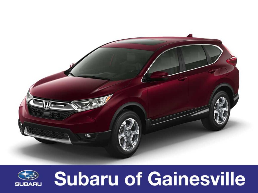 This 2017 Honda CR-V EX in , features 18 Alloy Wheels, 4-Wheel Disc Brakes, 5.64 Axle Ratio, 6 Speakers, ABS brakes, Air Conditioning, Alloy wheels, AM/FM radio: SiriusXM, Apple CarPlay/Android Auto, Auto High-beam Headlights, Automatic temperature control, Blind Spot Information (BSI) System warning, Brake assist, Bumpers: body-color, Cloth Seat Trim, Compass, Delay-off headlights, Driver door bin, Driver vanity mirror, Dual front impact airbags, Dual front side impact airbags, Electronic Stability Control, Exterior Parking Camera Rear, Four wheel independent suspension, Front anti-roll bar, Front Bucket Seats, Front Center Armrest, Front dual zone A/C, Front fog lights, Front reading lights, Fully automatic headlights, Heated door mirrors, Heated Front Bucket Seats, Heated front seats, Illuminated entry, Low tire pressure warning, Occupant sensing airbag, Outside temperature display, Overhead airbag, Overhead console, Panic alarm, Passenger door bin, Passenger vanity mirror, Power door mirrors, Power driver seat, Power moonroof, Power steering, Power windows, Radio data system, Radio: AM/FM Audio System w/6 Speakers, Rear anti-roll bar, Rear seat center armrest, Rear window defroster, Rear window wiper, Remote keyless entry, Security system, Speed control, Speed-sensing steering, Speed-Sensitive Wipers, Split folding rear seat, Spoiler, Steering wheel mounted audio controls, Tachometer, Telescoping steering wheel, Tilt steering wheel, Traction control, Trip computer, Turn signal indicator mirrors, and Variably intermittent wipers:
