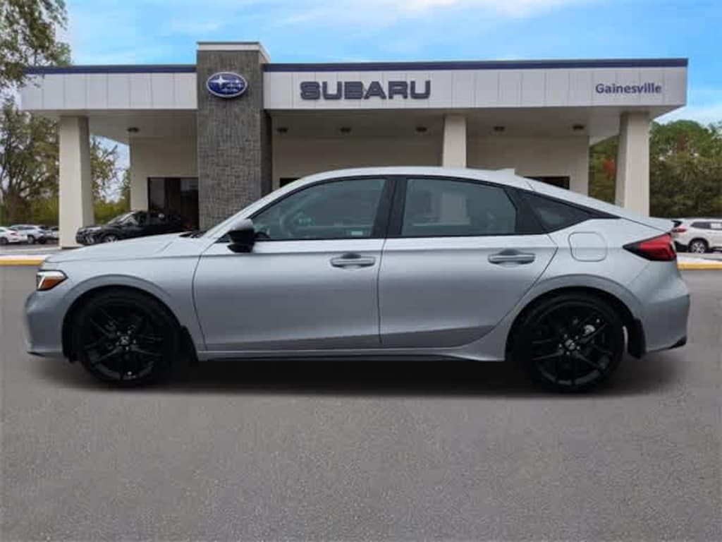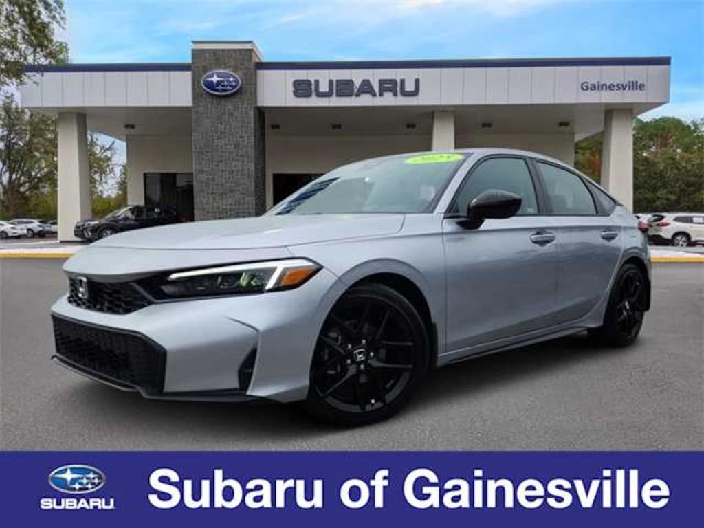 This 2025 Honda Civic Sport in Solar Silver Metallic, features 4-Wheel Disc Brakes, 8 Speakers, ABS brakes, Adaptive Cruise Control: Adaptive Cruise Control (ACC) with Low-Speed Follow, Air Conditioning, Alloy wheels, AM/FM radio, Apple CarPlay/Android Auto, Auto High-beam Headlights, Automatic temperature control, Blind Spot Information (BSI) System warning, Brake assist, Bumpers: body-color, Cloth/Leatherette Seating Surfaces, Delay-off headlights, Driver door bin, Driver vanity mirror, Dual front impact airbags, Dual front side impact airbags, Electronic Stability Control, Emergency communication system: HondaLink, Exterior Parking Camera Rear, Four wheel independent suspension, Front anti-roll bar, Front Bucket Seats, Front Center Armrest, Front reading lights, Fully automatic headlights, Heated door mirrors, Illuminated entry, Knee airbag, Lane departure: Lane Keeping Assist System (LKAS) active, Leather Shift Knob, Low tire pressure warning, Occupant sensing airbag, Outside temperature display, Overhead airbag, Panic alarm, Passenger door bin, Passenger vanity mirror, Power door mirrors, Power steering, Power windows, Radio data system, Radio: 180-Watt Audio System, Rear anti-roll bar, Rear side impact airbag, Rear window defroster, Rear window wiper, Remote keyless entry, Security system, Speed control, Speed-sensing steering, Split folding rear seat, Steering wheel mounted audio controls, Tachometer, Telescoping steering wheel, Tilt steering wheel, Traction control, Trip computer, and Wheels: 18 Gloss Black Alloy: BLUETOOTH HANDS FREE, BACK-UP CAMERA, POWER PACKAGE, ALLOY WHEELS, ONE OWNER NEVER A RENTAL, CLEAN VEHICLE HISTORY.