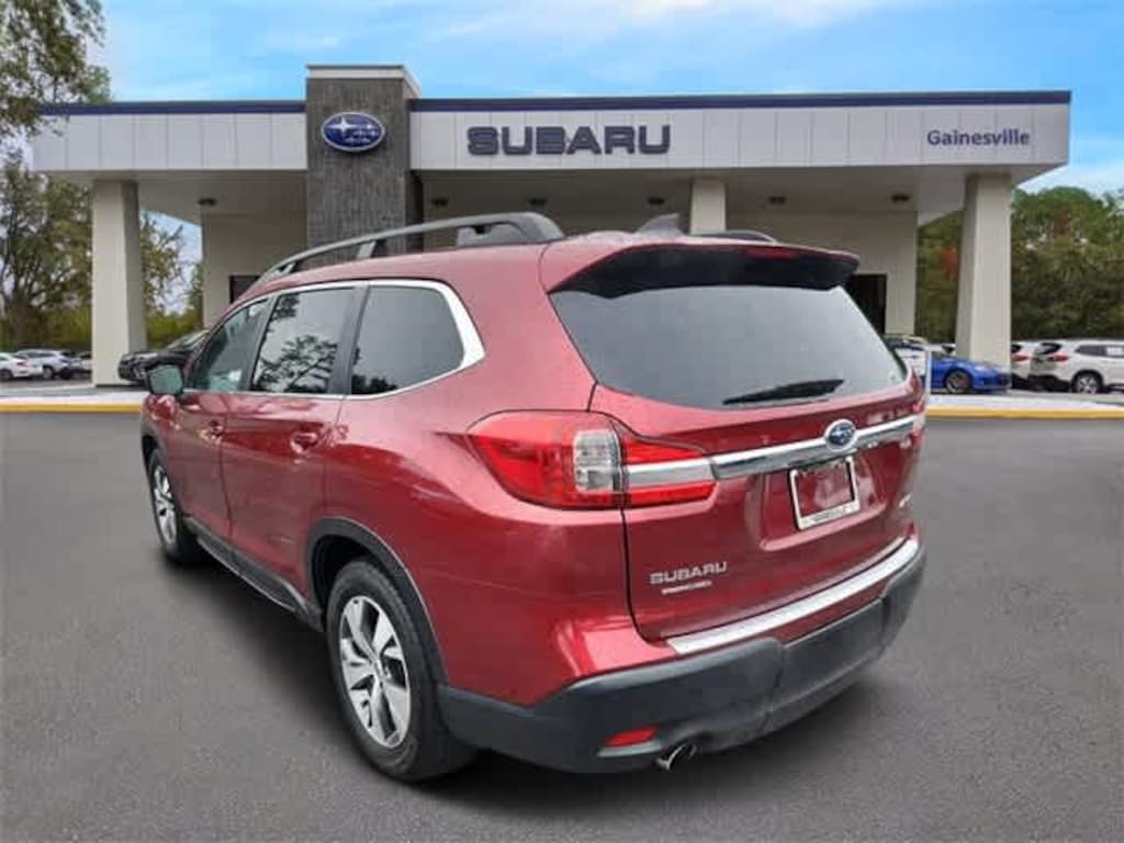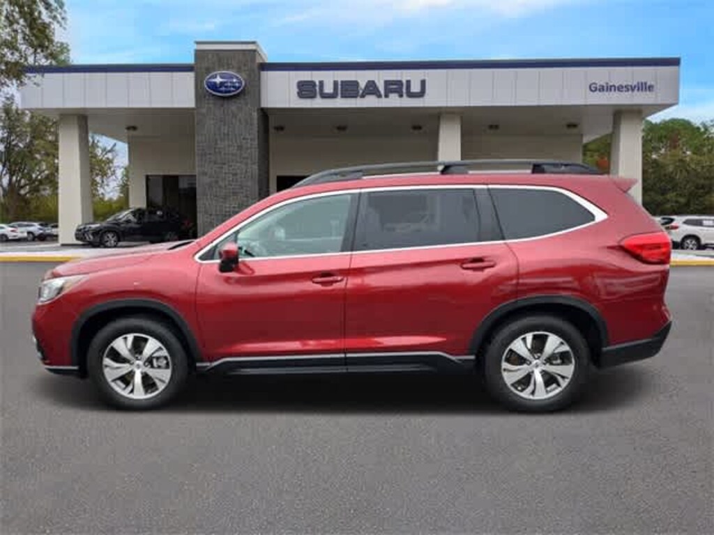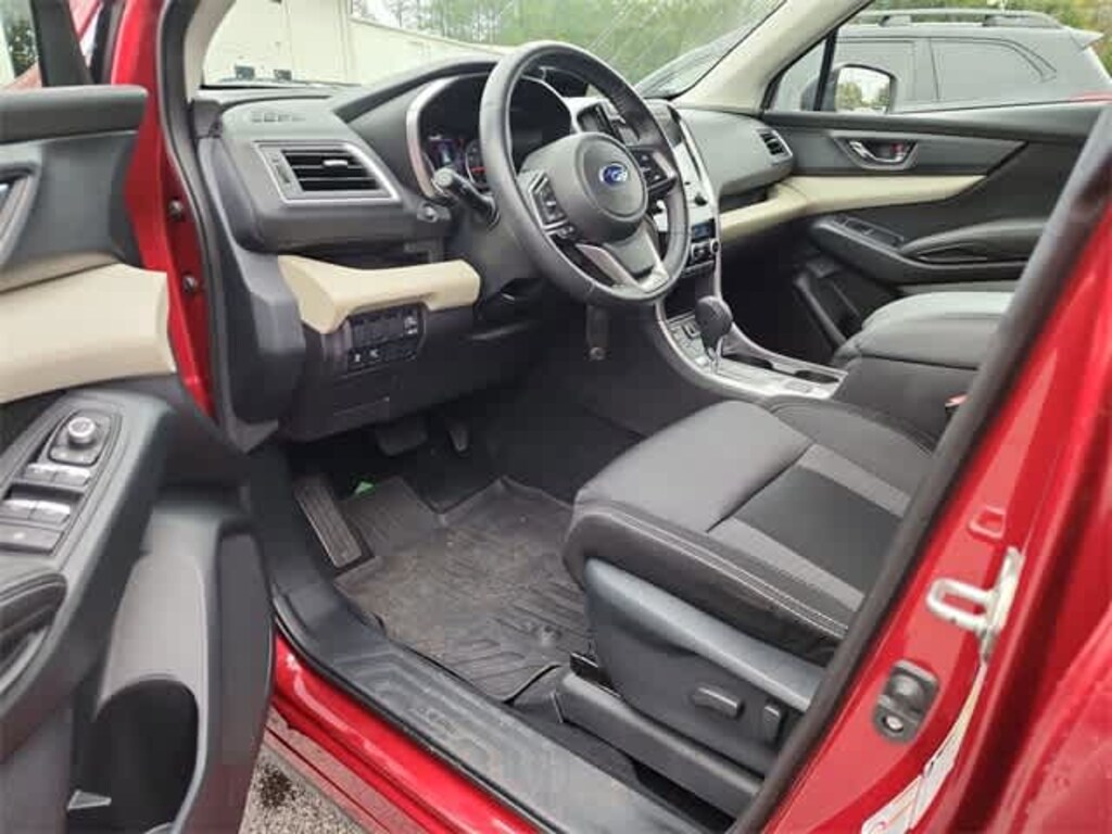 This 2019 Subaru Ascent Premium in Crimson Red Pearl, features Popular Package #1 (All-Weather Floor Liners, Auto-Dimming Exterior Mirror w/Approach Light, Auto-Dimming Mirror w/Compass & HomeLink, Cargo Tray, Rear Bumper Cover, and Rear Seatback Protector), Standard Model, 3rd row seats: bench, 4-Wheel Disc Brakes, 6 Speakers, ABS brakes, Air Conditioning, Alloy wheels, AM/FM radio: SiriusXM, Automatic temperature control, Axle Ratio: 4.44, Brake assist, Bumpers: body-color, Cargo Net, CD player, Delay-off headlights, Driver door bin, Driver vanity mirror, Dual front impact airbags, Dual front side impact airbags, Electronic Stability Control, Emergency communication system: STARLINK Safety and Security, Exterior Parking Camera Rear, Four wheel independent suspension, Front anti-roll bar, Front Bucket Seats, Front Center Armrest, Front dual zone A/C, Front reading lights, Fully automatic headlights, Heated door mirrors, Heated Front Bucket Seats, Heated front seats, Illuminated entry, Knee airbag, Low tire pressure warning, Occupant sensing airbag, Outside temperature display, Overhead airbag, Overhead console, Panic alarm, Passenger door bin, Passenger vanity mirror, Power door mirrors, Power driver seat, Power steering, Power windows, Radio data system, Radio: Subaru STARLINK 8.0 Multimedia Plus System, Rear air conditioning, Rear anti-roll bar, Rear reading lights, Rear seat center armrest, Rear window defroster, Rear window wiper, Remote keyless entry, Roof rack: rails only, Security system, Speed control, Spill Resistant Cloth Upholstery, Split folding rear seat, Spoiler, STARLINK/Apple CarPlay/Android Auto, Steering wheel mounted audio controls, Tachometer, Telescoping steering wheel, Tilt steering wheel, Traction control, Trip computer, Variably intermittent wipers, and Wheels: 18 Gray Aluminum Alloy w/Machine Finish: BLUETOOTH HANDS FREE, BACK-UP CAMERA, HEATED SEATS, POWER PACKAGE, ALLOY WHEELS, ONE OWNER NEVER A RENTAL.