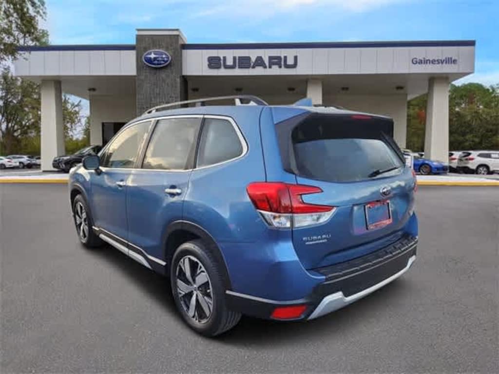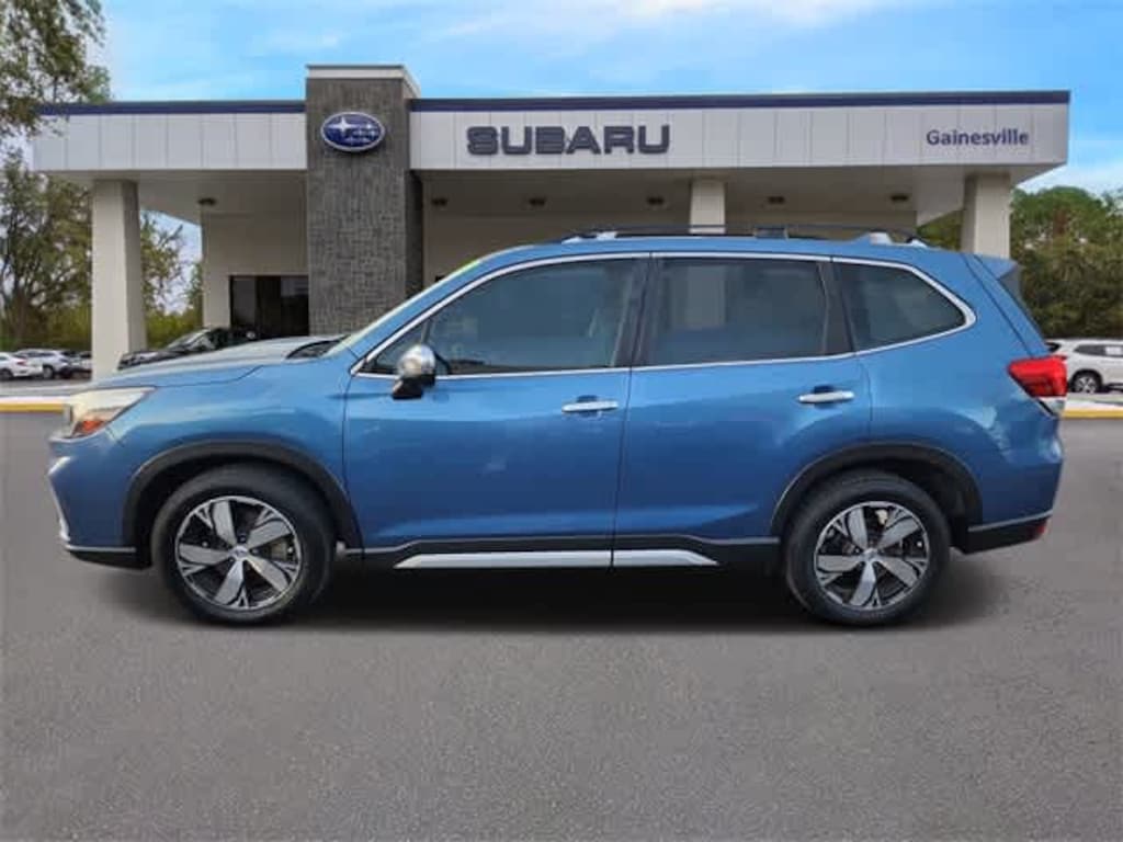 This 2019 Subaru Forester Touring in Horizon Blue Pearl, features Popular Package #3 (All-Weather Floor Liners, Auto-Dimming Exterior Mirror w/Approach Lighting, Auto-Dimming Mirror w/Compass & HomeLink, Cargo Net, Dome Light LED Upgrade, and Rear Bumper Cover), 3.70 Axle Ratio, 4-Wheel Disc Brakes, 9 Speakers, ABS brakes, Air Conditioning, Alloy wheels, AM/FM radio: SiriusXM, Auto High-beam Headlights, Automatic temperature control, Brake assist, Bumpers: body-color, CD player, Driver door bin, Driver vanity mirror, Dual front impact airbags, Dual front side impact airbags, Electronic Stability Control, Emergency communication system: STARLINK Safety and Security, Exterior Parking Camera Rear, Four wheel independent suspension, Front anti-roll bar, Front Bucket Seats, Front Center Armrest, Front dual zone A/C, Front fog lights, Front reading lights, Fully automatic headlights, harman kardon 576W Amp & Speaker System, harman/kardonî Speakers, Heated door mirrors, Heated Front Bucket Seats, Heated front seats, Heated rear seats, Heated steering wheel, HVAC memory, Illuminated entry, Knee airbag, Leather Shift Knob, Low tire pressure warning, Memory seat, Navigation System, Occupant sensing airbag, Outside temperature display, Overhead airbag, Overhead console, Paddle-Shift Control Switches, Panic alarm, Passenger door bin, Passenger vanity mirror, Perforated Leather-Trimmed Upholstery, Power door mirrors, Power driver seat, Power Liftgate, Power moonroof: Panoramic, Power passenger seat, Power steering, Power windows, Radio data system, Radio: Subaru Starlink 8.0 Multimedia Nav System, Rear anti-roll bar, Rear seat center armrest, Rear Seatback Protector, Rear window defroster, Rear window wiper, Remote keyless entry, Roof rack: rails only, Security system, Speed control, Speed-sensing steering, Split folding rear seat, Spoiler, STARLINK/Apple CarPlay/Android Auto, Steering wheel mounted audio controls, Tachometer, Telescoping steering wheel, Tilt steering wheel, Traction control, Trip computer, Turn signal indicator mirrors, Variably intermittent wipers, and Wheels: 18 x 7.0J Blk Machine Touring Alum Alloy: BLUETOOTH HANDS FREE, BACK-UP CAMERA, APPLE CAR PLAY, LEATHER, SUNROOF, HEATED SEATS, POWER SEATS, NAVIGATION, VENTILATED SEATS, POWER PACKAGE, ALLOY WHEELS, CLEAN VEHICLE HISTORY.