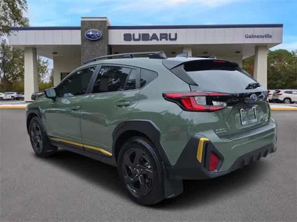 This 2024 Subaru Crosstrek Sport in Alpine Green, features BSD/RCTA & Power Driver Seat & Power Moonroof (10-Way Power Drivers Seat, Blind Spot Detection w/Rear Cross-Traffic Alert, and Power Moonroof), 3.70 Axle Ratio, 4-Wheel Disc Brakes, 6 Speakers, ABS brakes, Air Conditioning, Alloy wheels, AM/FM radio: SiriusXM, Anti-whiplash front head restraints, Auto High-beam Headlights, Automatic temperature control, Brake assist, Bumpers: body-color, Driver door bin, Driver vanity mirror, Dual front impact airbags, Dual front side impact airbags, Electronic Stability Control, Emergency communication system: STARLINK Safety and Security (Subscription Required), Exterior Parking Camera Rear, Four wheel independent suspension, Front anti-roll bar, Front Bucket Seats, Front Center Armrest, Front dual zone A/C, Front fog lights, Front reading lights, Fully automatic headlights, Heated door mirrors, Heated Front Bucket Seats, Heated front seats, Illuminated entry, Knee airbag, Leather Shift Knob, Low tire pressure warning, Occupant sensing airbag, Outside temperature display, Overhead airbag, Overhead console, Panic alarm, Passenger door bin, Passenger vanity mirror, Power door mirrors, Power steering, Power windows, Radio data system, Radio: Subaru STARLINK 11.6 Multimedia Plus Sys, Rear anti-roll bar, Rear seat center armrest, Rear window defroster, Rear window wiper, Remote keyless entry, Security system, Speed control, Speed-sensing steering, Split folding rear seat, Spoiler, Sport Cloth Upholstery, STARLINK/Apple CarPlay/Android Auto, Steering wheel mounted audio controls, Tachometer, Telescoping steering wheel, Tilt steering wheel, Traction control, Trip computer, Turn signal indicator mirrors, Variably intermittent wipers, and Wheels: 18 x 7.0J Dark Gray Aluminum Alloy:
