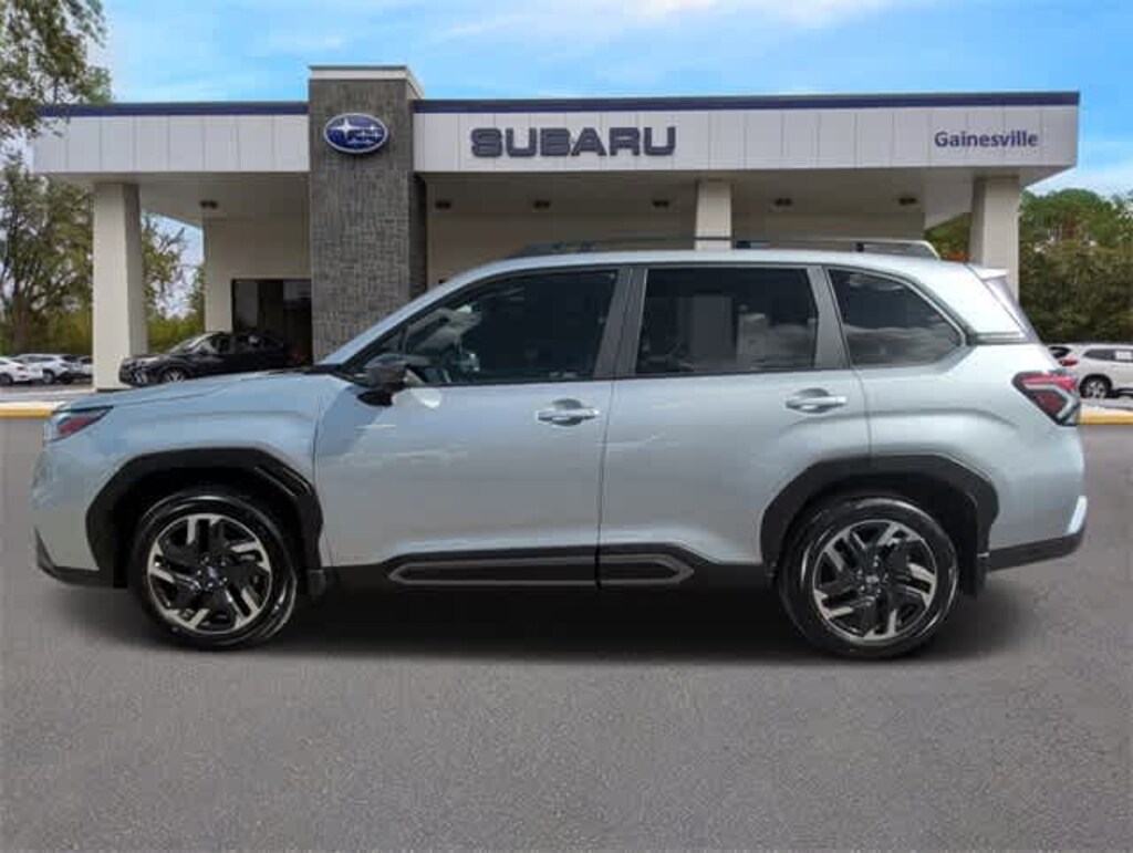 This 2025 Subaru Forester Limited in Ice Silver Metallic, features harman/kardon Audio & Navigation & RAB (Radio: Subaru 11.6 Multimedia Navigation System and Reverse Automatic Braking (RAB) System), Protection Package (All-Weather Floor Liners, Cargo Tray, Rear Bumper Cover, and Splash Guards), 4-Wheel Disc Brakes, 6 Speakers, ABS brakes, Air Conditioning, Alloy wheels, AM/FM radio: SiriusXM with 360L, Anti-whiplash front head restraints, Auto High-beam Headlights, Auto-Dimming Exterior Mirror w/Approach Light, Auto-Dimming Mirror w/Compass & HomeLink, Automatic temperature control, Brake assist, Bumpers: body-color, Driver door bin, Driver vanity mirror, Dual front impact airbags, Dual front side impact airbags, Electronic Stability Control, Emergency communication system: MySubaru Safety (3-year free trial), Exterior Parking Camera Rear, Four wheel independent suspension, Front anti-roll bar, Front Bucket Seats, Front Center Armrest, Front dual zone A/C, Front fog lights, Front reading lights, Fully automatic headlights, Heated door mirrors, Heated Front Bucket Seats, Heated front seats, Heated steering wheel, Illuminated entry, Knee airbag, Leather steering wheel, LED Upgrade, Low tire pressure warning, Occupant sensing airbag, Outside temperature display, Overhead airbag, Overhead console, Panic alarm, Passenger door bin, Passenger vanity mirror, Perforated Leather-Trimmed Upholstery, Power door mirrors, Power driver seat, Power Liftgate, Power moonroof: Panoramic, Power passenger seat, Power steering, Power windows, Radio data system, Radio: Subaru 11.6 Multimedia Plus System, Rear anti-roll bar, Rear seat center armrest, Rear Seatback Protector, Rear window defroster, Rear window wiper, Remote keyless entry, Security system, Speed control, Speed-sensing steering, Split folding rear seat, Spoiler, Steering wheel mounted audio controls, Tachometer, Telescoping steering wheel, Tilt steering wheel, Traction control, Trip computer, Turn signal indicator mirrors, Variably intermittent wipers, and Wheels: 18 x 7.0 J Dark Metallic Aluminum-Alloy: Subaru Certified, BLUETOOTH HANDS FREE, BACK-UP CAMERA, APPLE CAR PLAY, LEATHER, SUNROOF, HEATED SEATS, VENTILATED SEATS, POWER PACKAGE, ALLOY WHEELS, CLEAN VEHICLE HISTORY. Certified.