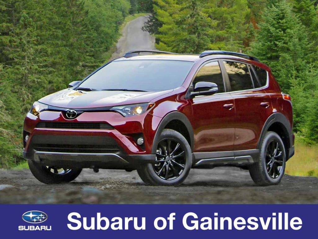 This 2018 Toyota RAV4 Adventure in Silver Sky Metallic, features 4-Wheel Disc Brakes, 4.071 Axle Ratio, ABS brakes, Air Conditioning, Auto High-beam Headlights, Brake assist, Bumpers: body-color, Driver door bin, Driver vanity mirror, Dual front impact airbags, Dual front side impact airbags, Electronic Stability Control, Exterior Parking Camera Rear, Four wheel independent suspension, Front anti-roll bar, Front Bucket Seats, Front Center Armrest, Front reading lights, Fully automatic headlights, Illuminated entry, Knee airbag, Low tire pressure warning, Occupant sensing airbag, Outside temperature display, Overhead airbag, Overhead console, Panic alarm, Passenger door bin, Passenger vanity mirror, Power door mirrors, Power steering, Power windows, Radio data system, Rear anti-roll bar, Rear seat center armrest, Rear window defroster, Rear window wiper, Remote keyless entry, Speed control, Speed-sensing steering, Split folding rear seat, Spoiler, Steering wheel mounted audio controls, Tachometer, Telescoping steering wheel, Tilt steering wheel, Traction control, and Trip computer: BLUETOOTH HANDS FREE, BACK-UP CAMERA, POWER PACKAGE, ALLOY WHEELS, ONE OWNER NEVER A RENTAL.